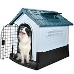 犬小屋 中小型犬用 犬舎 鉄扉付き 開閉可能な窓が付いています 組立式 ペットハウス プラスチック製 防風 防雨 通気性 換気 さびない 組立簡
